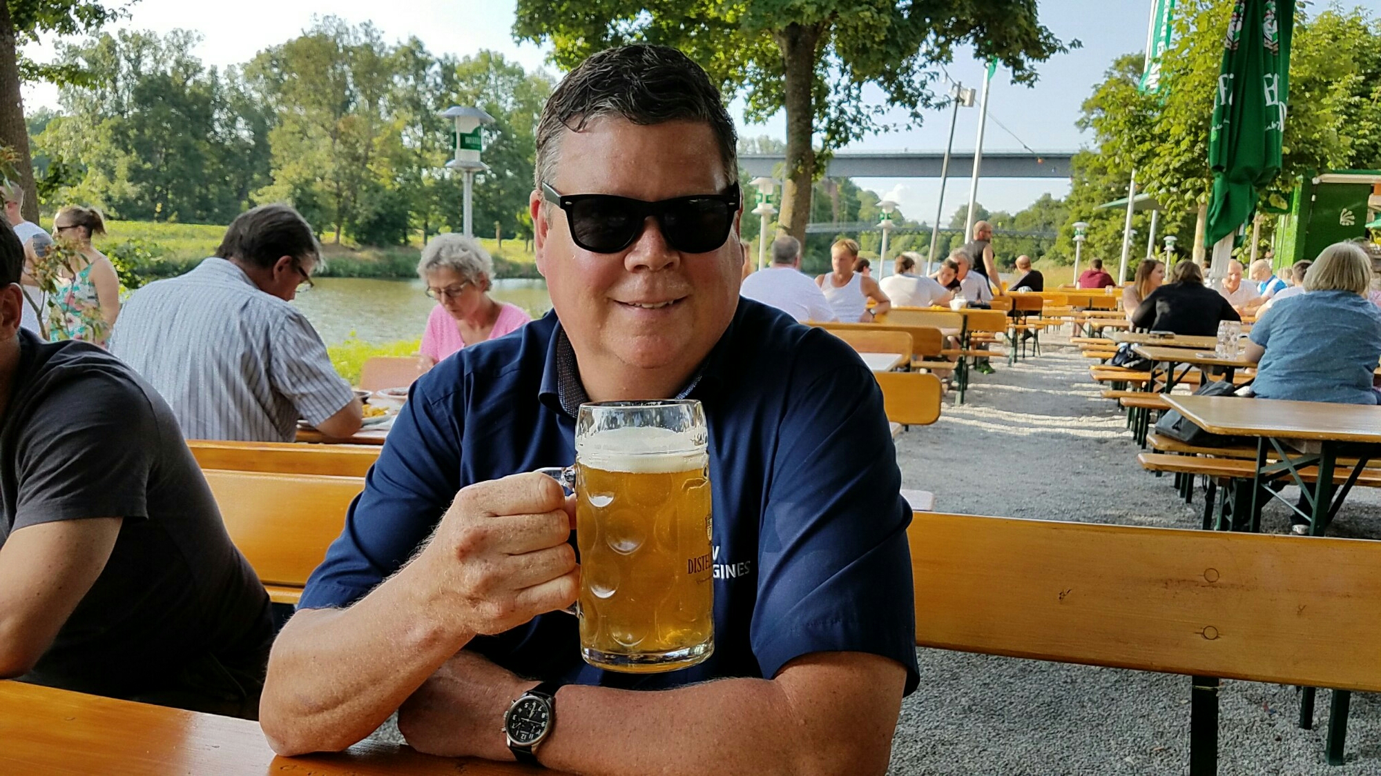I travel to Benningen, Germany (outside of Stuttgart) a couple of times a year to visit a client of mine and love to visit the Bootshaus Biergarten on the banks of the Neckar river in Marbach. I was there the end of May 2018 and the weather was spectacular. Had a few pints of beer and a gyro. The restaurant has mainly Greek dishes but you can also get sausages. There is a pedestrian bridge across the river so we were able to walk there from Benningen. Here is a link to their website with more info: http://www.bootshaus-marbach.de/